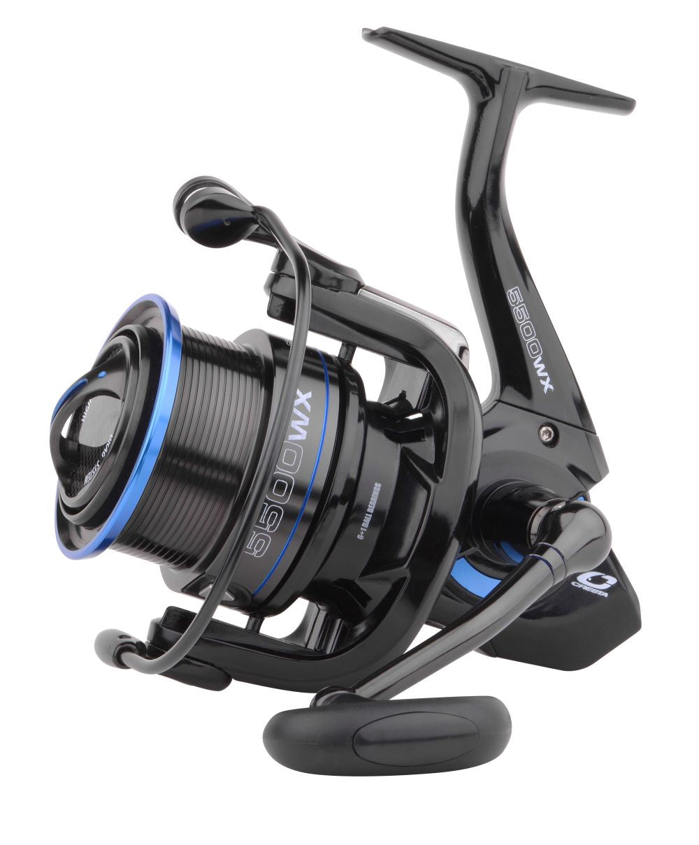 Model 5000WX Overbrenging 5,5:1 Inhaalcapaciteit 97 cm. Gewicht 384gr. Lijncapaciteit nylon 0.23mm 150 mtr. Kogellagers 6+1 Reservespoel Nee