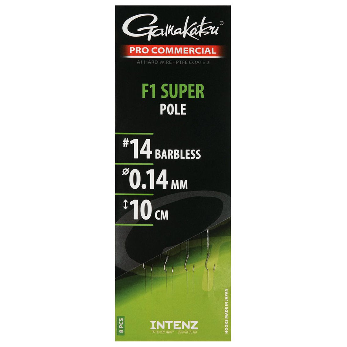 OmschrijvingDe F1 Super Pole kant en klare onderlijnen zonder weerhaak zijn geknoopt van Cresta Visorate Power Mono en gemaakt volgens de hoogste kwaliteitsnormen. De haken zijn vervaardigd van Gamakatsu A1 Hardwire en voorzien van een P.T.F.E coating. Per haakmaat is de trekkracht van de lijn afgestemd op de sterkte van de haak, waardoor telkens de optimale verhouding tussen kracht en soepelheid ontstaat. De onderlijnen zijn recht en goed beschermd in de verpakking geplaatst en gemakkelijk hieruit te nemen. De F1 Super onderlijnen zijn verkrijgbaar in zowel 10cm als 15cm en uitermate geschikt voor de lichtere visserij op commercials met de vaste hengel met maden, casters en zachte pellets.