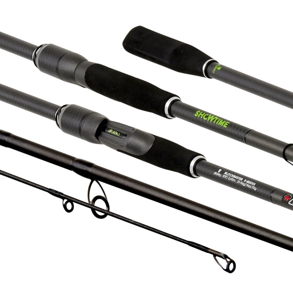 Deze hengel is otworpen voor het vissen met zwaar kustaas vanaf de oever. Uitstekende werpeigenschappen met middelgroot tot groot kunstaas die zijn bedoeld voor het vissen op mooie vissen (grote snoekbaarzen, snoeken). De kracht die deze SHOWTIME BLOCKBUSTER S-265XH spinhengel biedt, is ideaal om kunstaas op grote afstand te animeren en een grote vis met gemak te kunnen drillen. het ergonomische handvat is bijzonder comfortabel. De bevestiging van de molen is beveiligd door een molenhouder met een speciaal lock mechanisme. Fuji K Alconite tweepoots en eenpoots ogen aan de top voor maximale gevoeligheid. Toray carbon.