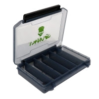 Doos voor het meenemen van het gewenste kunstaas tijdens een vissessie. Deksel kan aan iedere zijde apart worden geopend voor een snelle toegang, zeker wanneer de doos in een andere tas opgeborgen is.