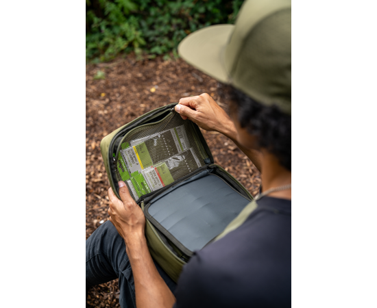 Een supergoed georganiseerd alternatief voor tackle boxen en standaard pouches. Voorzien van verdeler met end tackle zakken waar je zakjes haken en end tackle veilig en netjes kunt opbergen. Gemaakt van sterk EVA gegoten deksel en bodem, hij heeft de juiste maten voor de Tackle Blox range aan boxes en accessoires.
