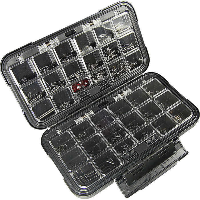 Alle kleine accessoires zoals wartels, snaps, splitrings en crimps kunnen handig opgeborgen worden in deze hoogwaardige tackle box met goed sluitende one-touch dekseltjes. De kleine tackle boxen nemen weinig plaats in en kunnen zowel voor het vissen op de boot als struinend langs de waterkant gemakkelijk meegenomen worden.