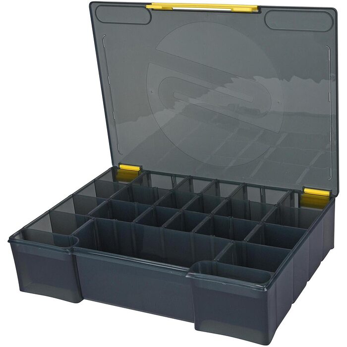 TBX boxen zijn door SPRO volledig ontworpen voor het vissen met kunstaas. De dozen zijn allemaal gemaakt met metrische buitenafmetingen in een modulair maatpatroon, waardoor ze op een uniforme manier kunnen worden gestapeld en in een tackle bag kunnen worden geplaatst. TBX dozen zijn ontworpen met een volledig uniek plat scharniersysteem, wat betekent dat elke kant van de doos plat is. Dit is een geweldige functie omdat het veel gemakkelijker is om de dozen in tackle bags te plaatsen. Elke doos heeft een enkele brede clip aan de voorzijde die met één hand kan worden gebruikt. Een ander uniek aspect van TBX-boxen zijn de secties voor kleine onderdelen. Waar bij normale tackle boxes de randen verspilde ruimte zijn, hebben onze ontwerpers van de gelegenheid gebruikgemaakt om de ruimte te benutten door ondiepe compartimenten toe te voegen voor allerhande kleinmateriaal. Er is zelfs een los verkrijgbare TBX-Tray beschikbaar die compatibel is met de meeste dozen.