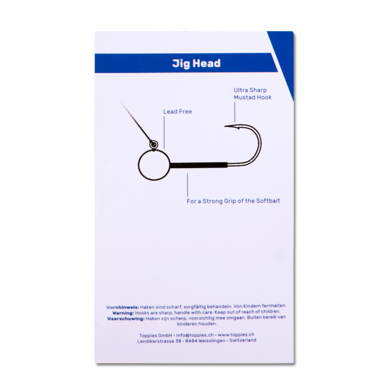Tungsten jigkop met de typische ronde kopvorm voor een breed gebruik bij het vissen met softbait. De ultra scherpe en stabiele haken van Mustad kunnen tegen een stootje en de speciale baitholder houdt de softbait op zijn plaats alsof hij vastgelijmd is. En de softbait kan vervangen worden zonder het te vernielen. Tungsten heeft een hogere densiteit dan lood en is daarom vele malen kleiner. Door de lagere lucht- en waterweerstand kunnen grotere werpafstanden en snellere zinkfases worden bereikt.